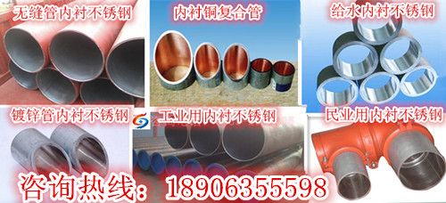 陜西不銹鋼復(fù)合管、陜西內(nèi)襯不銹鋼復(fù)合管、陜西不銹鋼復(fù)合管廠家、陜西不銹鋼復(fù)合管價格、陜西不銹鋼復(fù)合管現(xiàn)貨、陜西不銹鋼復(fù)合管規(guī)格、陜西雙金屬復(fù)合管、內(nèi)襯不銹鋼復(fù)合管是新型低碳環(huán)保的專利產(chǎn)品。內(nèi)襯不銹鋼復(fù)合管在輸送腐蝕性介質(zhì)的領(lǐng)域又創(chuàng)新高,克服了其它復(fù)合管材在輸水、輸油、輸氣等應(yīng)用領(lǐng)域上不耐高壓、不耐高溫、不耐腐蝕等性能缺陷。內(nèi)襯不銹鋼復(fù)合管是以薄壁不銹鋼管為內(nèi)襯層,外層由鍍鋅管、焊管、無縫管、合金鋼復(fù)合而成的一種內(nèi)襯不銹鋼復(fù)合管。已廣泛地應(yīng)用于民用建筑的給排水、消防、暖通、太陽能管道的安裝,同時在石油、化工等工業(yè)領(lǐng)域也有廣泛的應(yīng)用前景。產(chǎn)品規(guī)格DN15-DN2020。